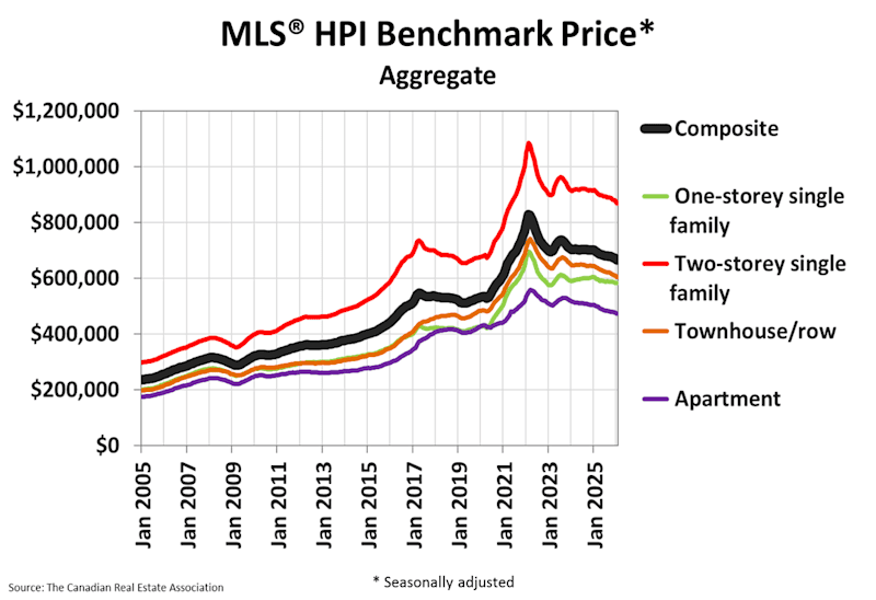 According to CREA, the National Composite MLS Home Price Index (HPI) was down month-over-month (+0.9%) and declined by 4.9% year-over-year.